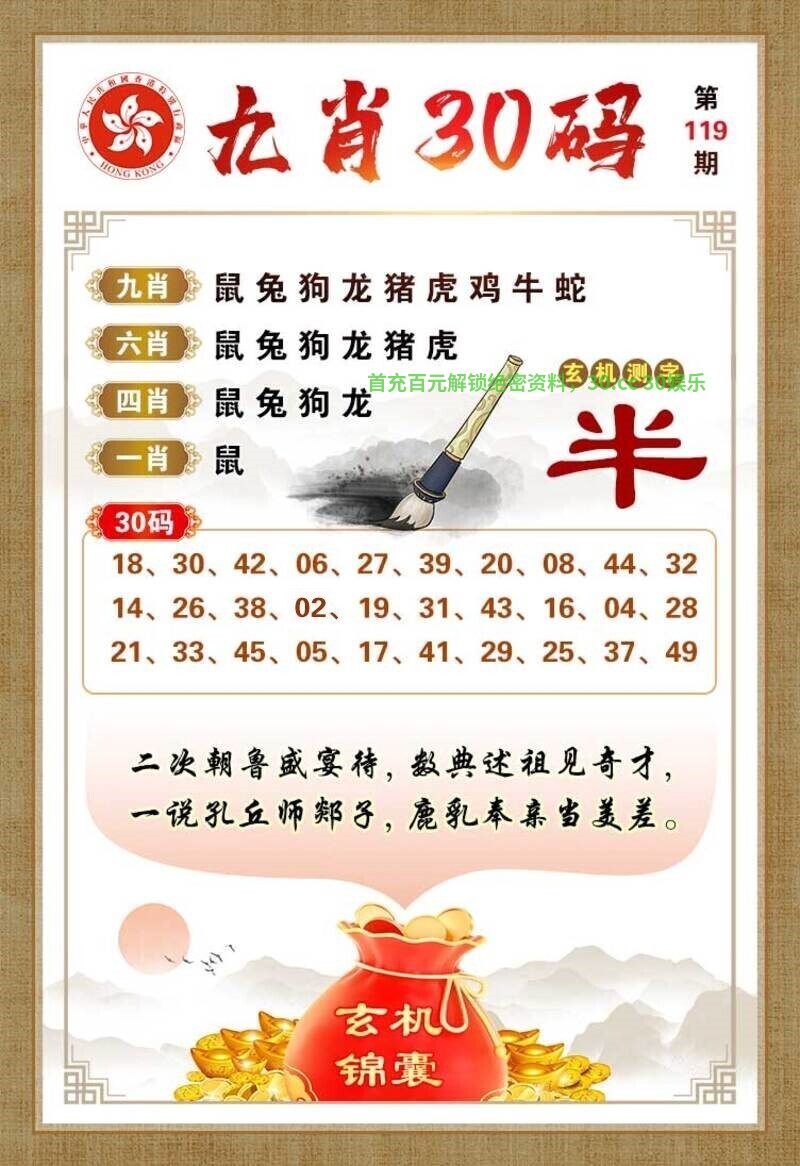 119期⑨肖:兔鼠狗猴马龙虎鸡牛:开蛇49